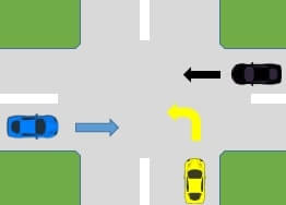 سوال ۱۳ – در تقاطع زیر حق تقدم با کدام وسیله های نقلیه می باشد؟