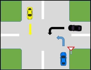 سوال ۱۸ – در شکل زیر حق تقدم عبور با کدام وسیله نقلیه می باشد؟